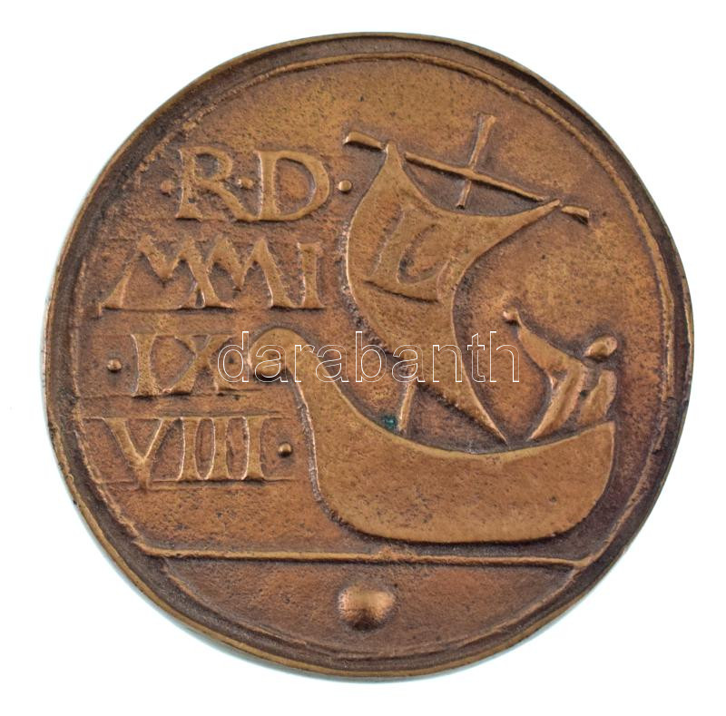 Asszonyi Tamás (1942-) 2001. "NAVIGARE NECESSE EST / R. D. MMI. IX. VIII." kétoldalas öntött bronz emlékérem (50mm) T:AU,XF