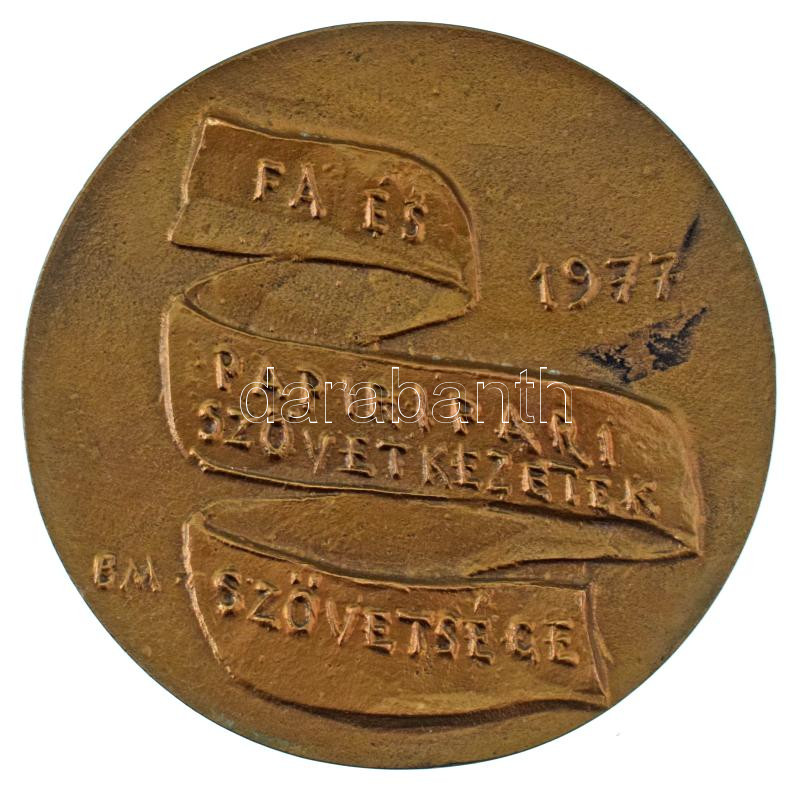 Borsos Miklós (1906-1990) 1977. "Fa- és Papíripari Szövetkezetek Szövetsége" kétoldalas, öntött bronz emlékérem (81mm) T:AU kis patina