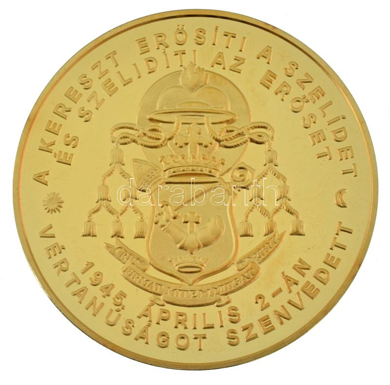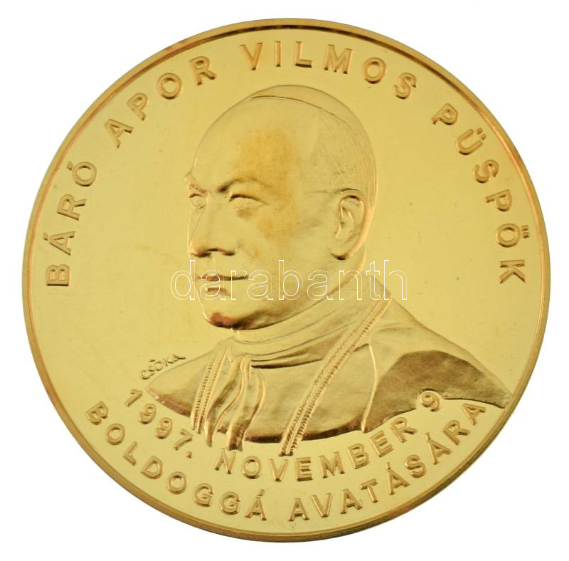 Csóka Zsuzsa (1962-) 1997. "Báró Apor Vilmos püspök boldoggá avatására" kétoldalas, aranyozott bronz emlékérem, kapszulában (42,5mm) T:PP