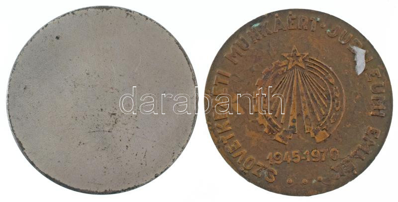 Jeckel Ferenc (1950-2012) 1980. "Szövetkezeti Munkáért - Jubileumi emlék 1945-1980" kétoldalas bronz emlékérem tokban (70mm) + DN "Szabadság-szobor" egyoldalas, ezüstözött bronz emlékérem (70mm) T:VF, patina