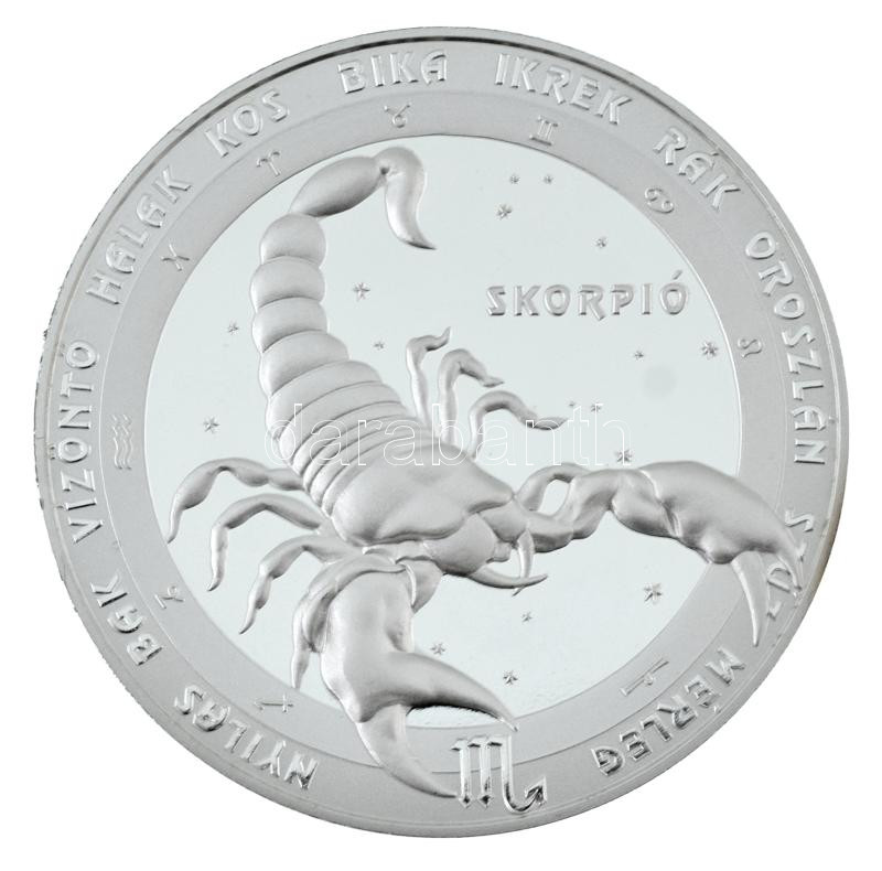 Kósa István (1953-) DN "Horoszkóp érmesorozat - Skorpió" ezüstözött fém emlékérem, kapszulában, tanúsítvánnyal, dísztokban (42,5mm) T:PP