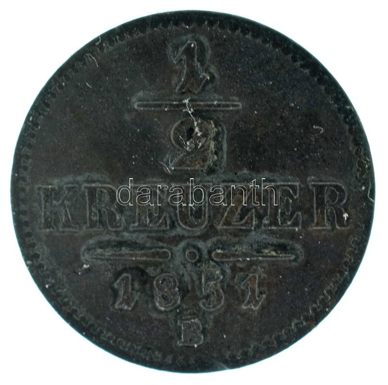 1851B 1/2kr Cu T:XF patina https://www.darabanth.com/de/510-Fernauktion/510.0/Numismatik/Ungarische-Munzen-und-Munzen-mit-ungarischem-Munzzeichen~692/1851B-12kr-Cu-TXF-patina3Cbr-3E~II3450119