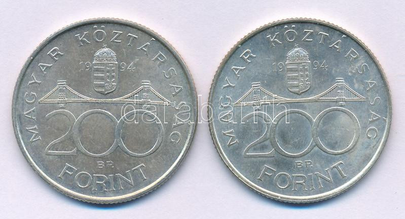 1994. 200Ft Ag "Deák" (2x) T:AU,XF patina