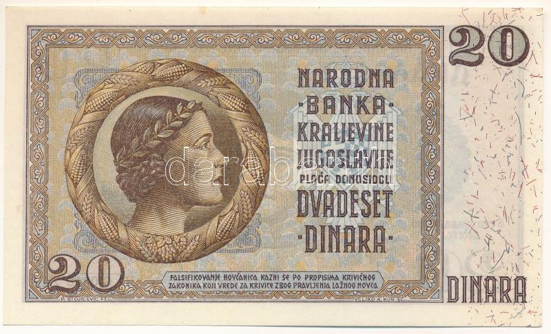Yugoslavia 1936. ... https://www.darabanth.com/de/510-Fernauktion/510.0/Numismatik/Weltweit-Banknoten~698/Jugoszlavia-1936-20D-C0510-021-TAU-3Cbr-3E-Yugoslavia-1936-20-Dinara-C0510-021-CAU3Cbr-3E~II3441678