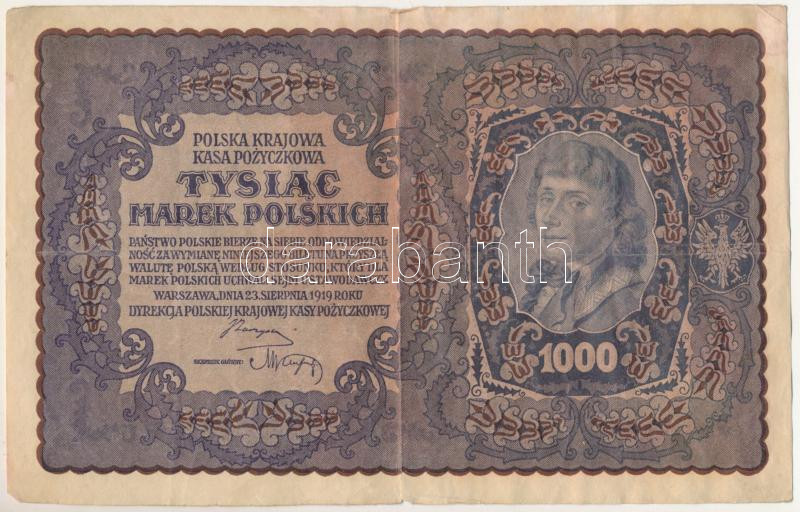 Lengyelország 1919. 1000M vízjeles papíron "B 385941" T:F er... https://www.darabanth.com/de/510-Fernauktion/510.0/Numismatik/Weltweit-Banknoten~698/Lengyelorszag-1919-1000M-vizjeles-papiron-B-385941-TF-eros-papir3Cbr-3E-Poland-1919-1000-M~II3417496
