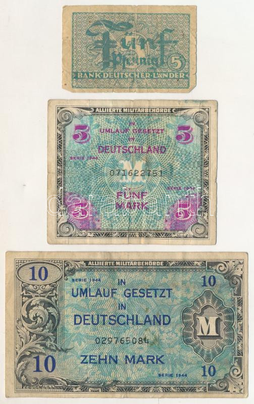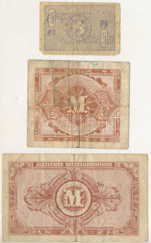 Német Harmadik Birodalom / Szövetséges megszállás 1944. 5M + 10M + Német Szövetségi Köztársaság 1948. 5pf T:F,VG
