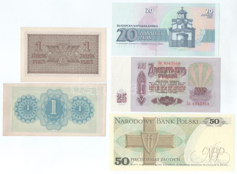 Vegyes, 5db-os külföldi bankjegy tétel, közte Ausztria / Szövetséges megszállás 1944. 1Sch, stb. T:UNC,AU, sarokhajlás