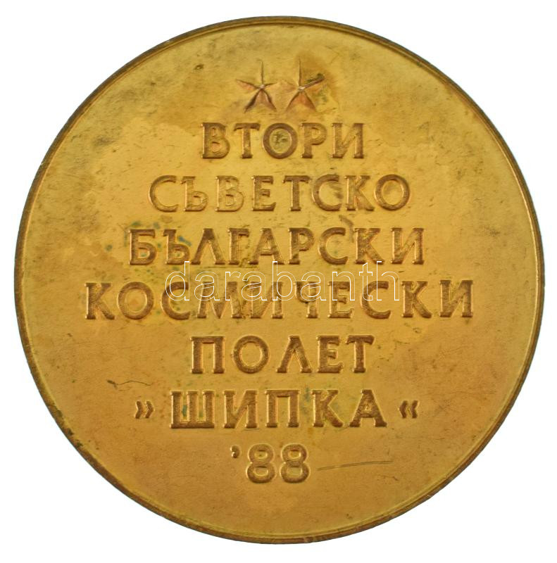 Beschreibung: Bulgária 1988. "II. Szovjet-bulgár közös űrrepülés " kétoldalas aranyozott bronz emlékérem (60mm) T:XF