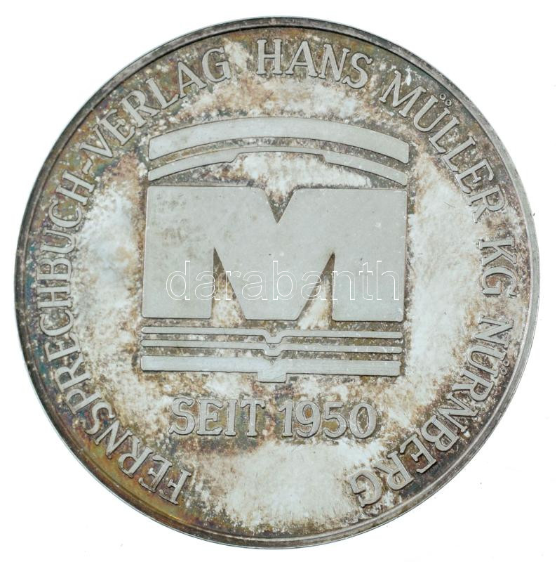 Német Szövetségi Köztársaság 1984. "Születésének 100. évfordulója alkalmából 1884-1984 - Alapító Hans Müller / Telefonkönyv-kiadói együttműködés Hans Müller - Nürnberg - 1950 óta" kétoldalas, peremén jelzett Ag emlékérem, eredeti tokban (14,71g/0.999/30mm) T:XF (eredetileg PP), patina