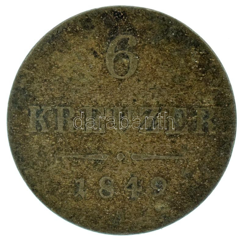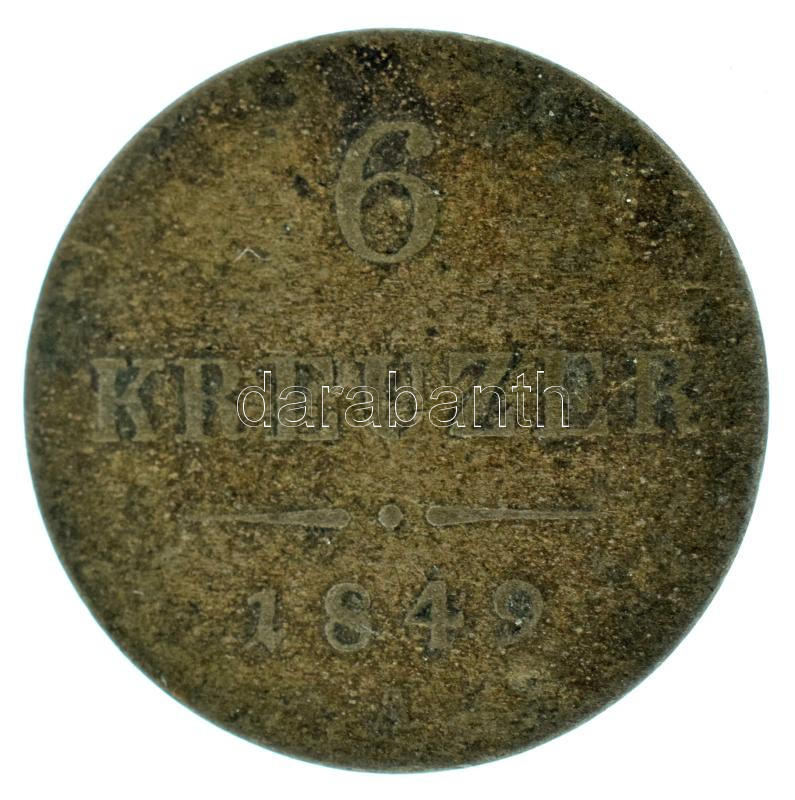 Austria 1849A 6 Kreuzer Ag C:F patin... https://www.darabanth.com/de/510-Fernauktion/510.0/Numismatik/Weltweit-Munzen~699/Ausztria-1849A-6kr-Ag-TF-patina3Cbr-3E-Austria-1849A-6-Kreuzer-Ag-CF-patina3Cbr-3E-Krause-KM232200~II3431480