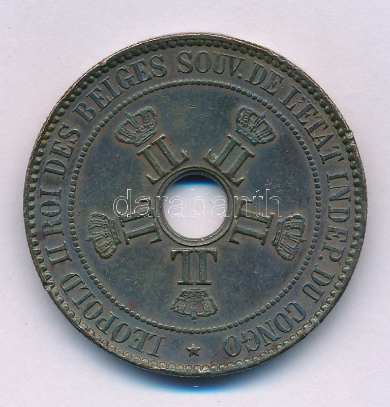 Belga-Kongó / Kongó Szabad Állam 1888. 10c Cu "II. Lipót" T:XF,VF peremhiba