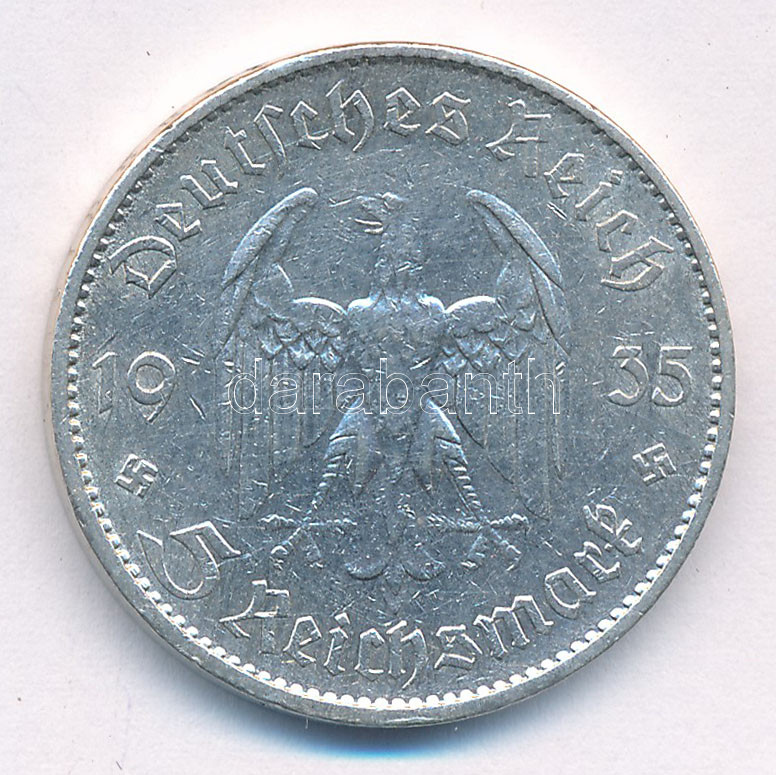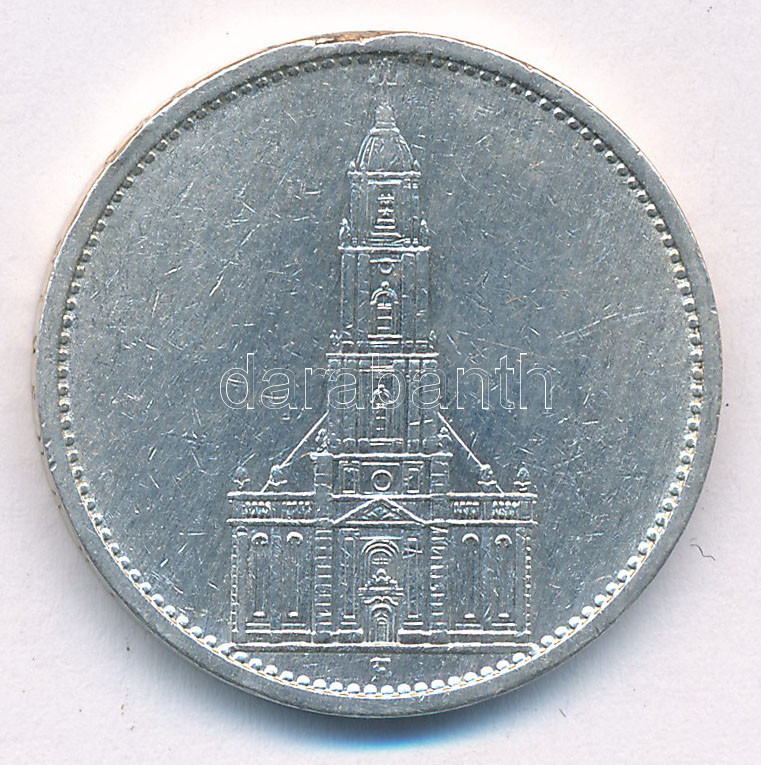Német Harmadik Birodalom 1935A 5M Ag "Garnisonkirche" T:2,2- ph. German Third Reich 1935A 5 Reichsmark Ag "Garnisonkirche" C:XF,VF edge error Krause KM#83