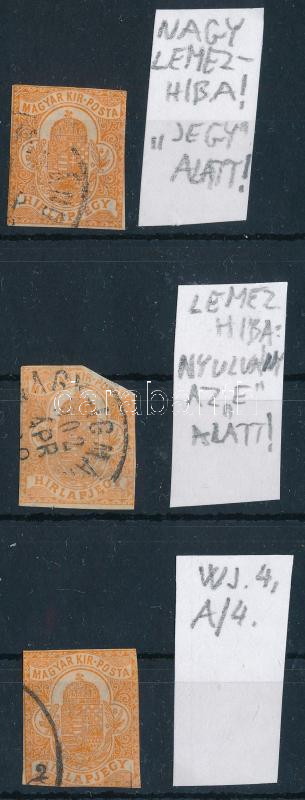 1900-1904 3 db Hírlapbélyeg, közte 2 db lemezhibával, a harmadik fordí... https://www.darabanth.com/de/510-Fernauktion/510.0/Philatelie-und-Postgeschichte-Ungarn/Ausgaben-1900-1919~34/1900-1904-3-db-Hirlapbelyeg-kozte-2-db-lemezhibaval-a-harmadik-forditott-vizjelallassal~II3444656