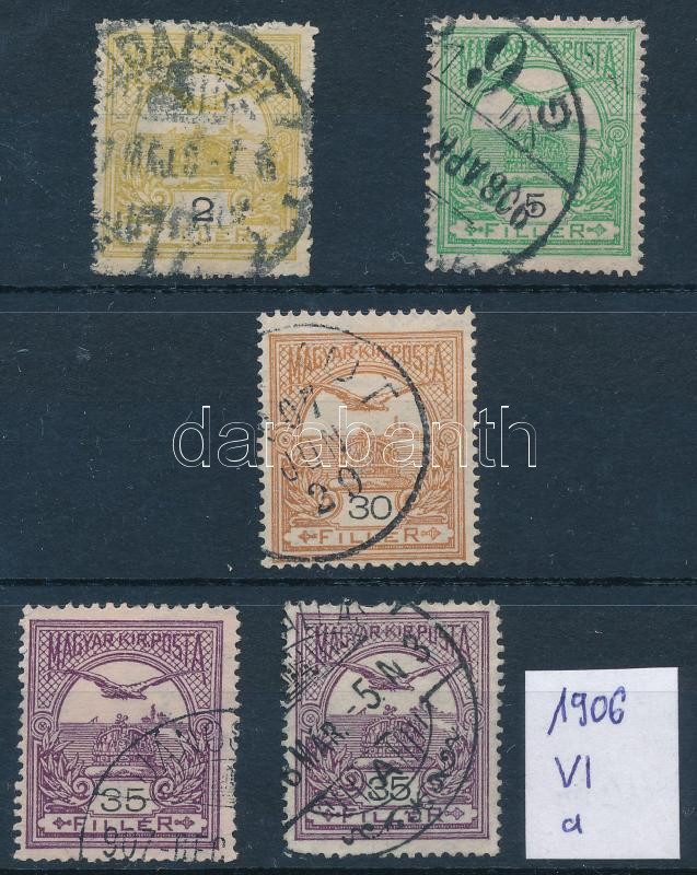 Beschreibung: 1906 5 db Turul bélyeg a. számvízjelállással / star in the watermark