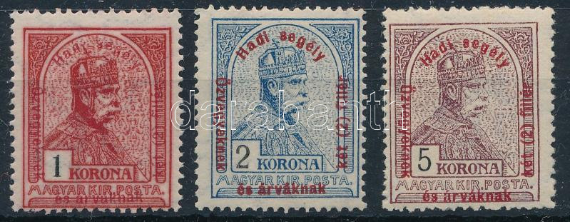 1915 Hadisegély 1K, 2K, 5K (10.800) https://www.darabanth.com/de/510-Fernauktion/510.0/Philatelie-und-Postgeschichte-Ungarn/Ausgaben-1900-1919~34/1915-Hadisegely-1K-2K-5K-10800~II3454509