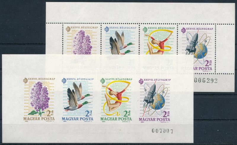 Beschreibung: 1964 Bélyegnap Monográfia blokkpár, a vágott blokk kisméretű sorszámmal (14.000)