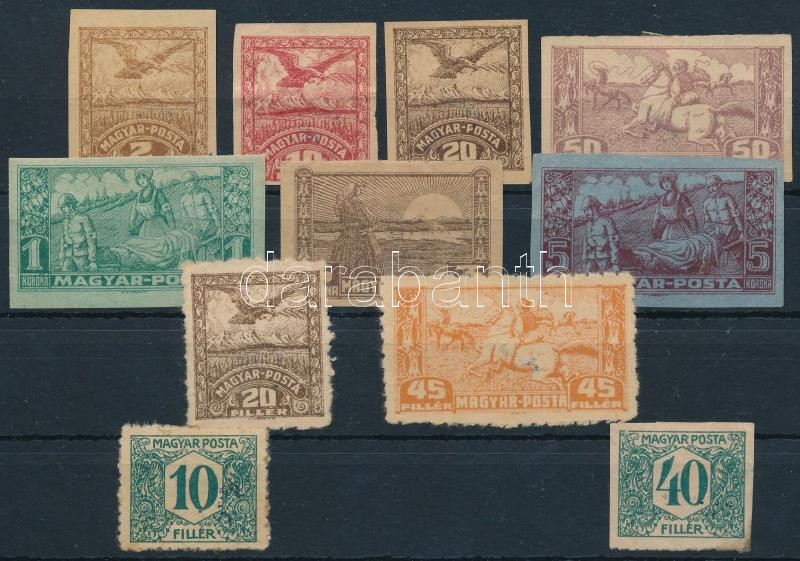 Beschreibung: Debrecen II 1919 8 db vágott és 3 db fogazott próbanyomat , Bodor vizsgálójellel