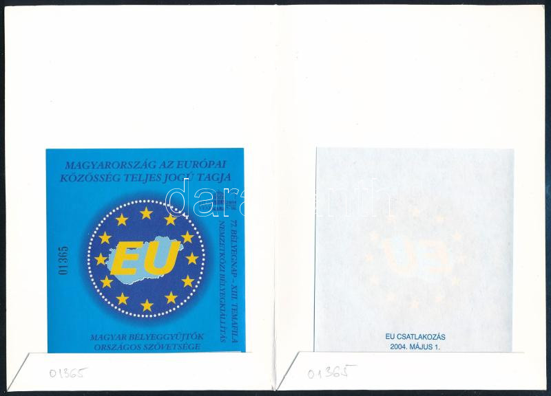 Beschreibung: 2004 Magyarország az Európai Közösség teljes jogú tagja fogazott és vágott emlékív azonos sorszámmal, tokban
