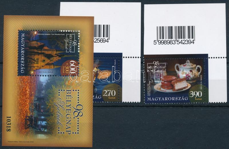 Beschreibung: 2025 98. Bélyegnap Szolnok ívsarki vonalkódos sor + blokk
