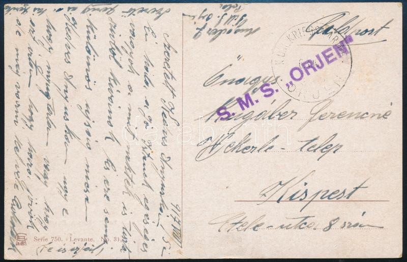 1917 Tábori posta képeslap "S.M.S. ORJEN" https://www.darabanth.com/de/510-Fernauktion/510.0/Philatelie-und-Postgeschichte-Ungarn/Osterreich-Ungarische-Feldpost-Erster-Weltkrieg-Marine~41/1917-Tabori-posta-kepeslap-SMS-ORJEN~II3023390