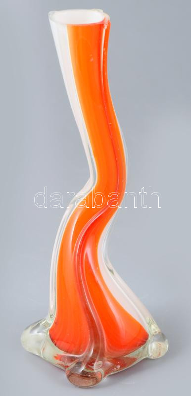 Beschreibung: Kétszínű színezett üveg váza, kis pattogzással, m: 20 cm