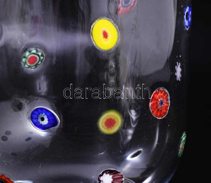 Murano talpas váza, színtelen üvegben millefiori beolvasztásokkal, jel... https://www.darabanth.com/de/510-Fernauktion/510.0/Porzellan-Keramik-Glass/Glaser~788/Murano-talpas-vaza-szintelen-uvegben-millefiori-beolvasztasokkal-jelzes-nelkul-hibatlan-~II3454560