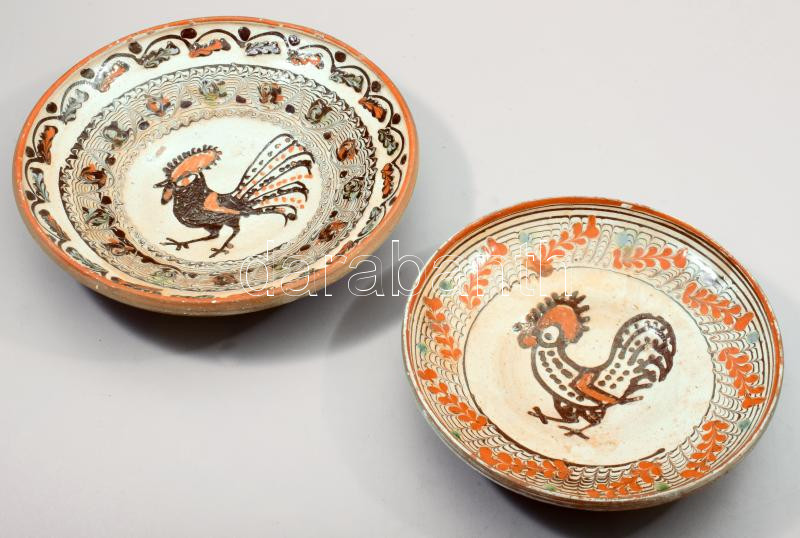 Beschreibung: 2 darab erdélyi kakasmintás tál, d: 22 cm alatt