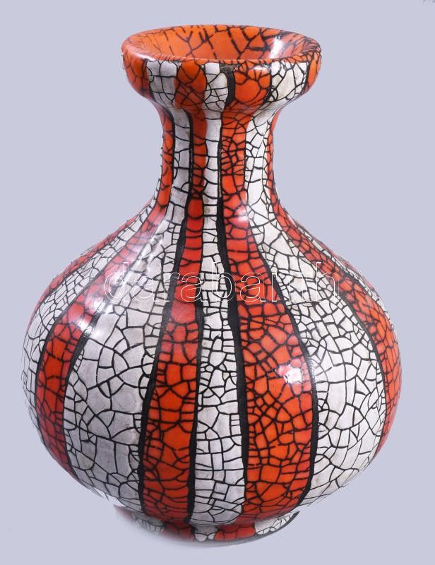 Beschreibung: Gorka Géza Iparművészeti Vállalatos repesztett mázas váza, jelzett, m: 16 cm