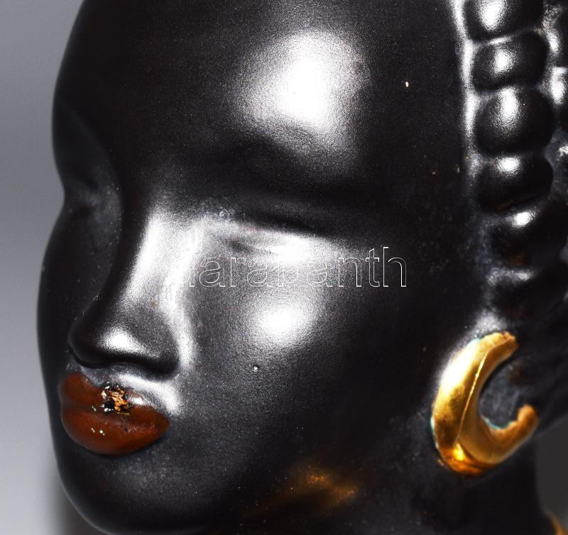 Beschreibung: Izsépy Margit: Néger hölgy büszt. Kerámia, Jelzés nélkül, kis mázkopással, m: 23 cm