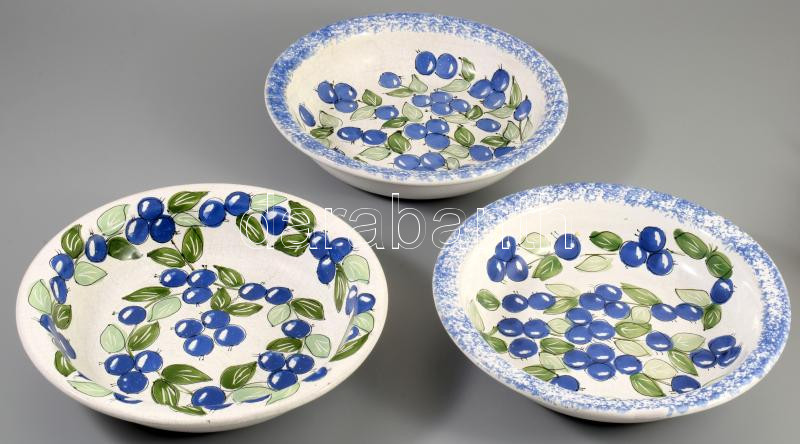 Beschreibung: Sárospataki kerámia 3 darab tál, jelzett, kis kopással, d: 22 cm