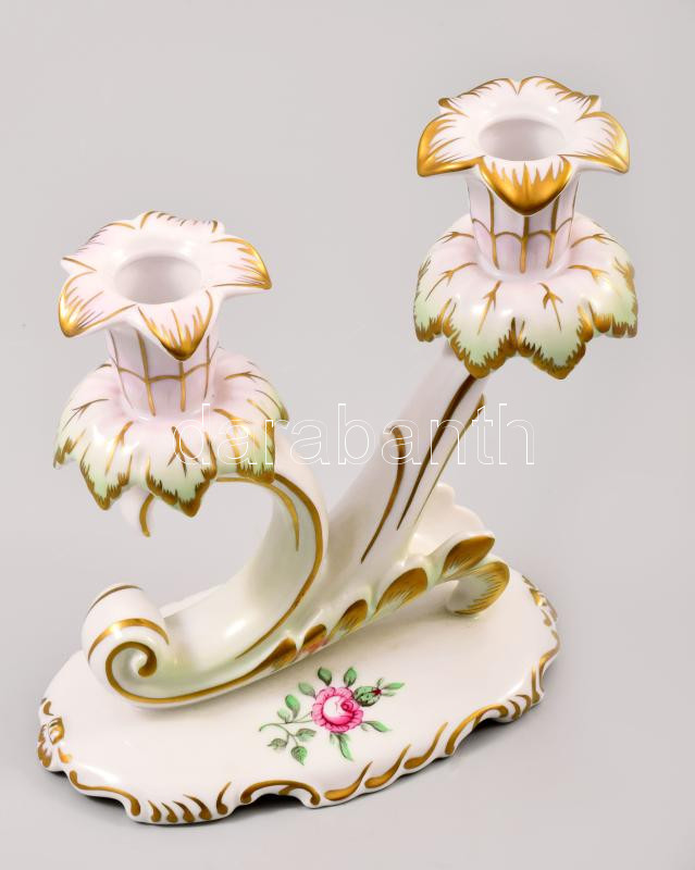 Hollóházi két ágú barokkos gyertyatartó, jelzett, hibátlan, 16 cm https://www.darabanth.com/de/510-Fernauktion/510.0/Porzellan-Keramik-Glass/Porzellan~1107/Hollohazi-ket-agu-barokkos-gyertyatarto-jelzett-hibatlan-16-cm~II3432048