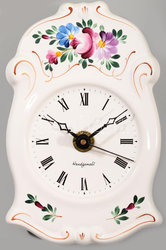 Kézzel festett porcelán falióra, 15x9,5 cm https://www.darabanth.com/de/510-Fernauktion/510.0/Porzellan-Keramik-Glass/Porzellan~1107/Kezzel-festett-porcelan-faliora-15x9-5-cm~II3433346