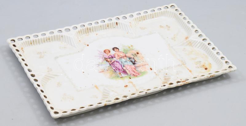 Beschreibung: Szecessziós porcelán tálca, 18x29 cm
