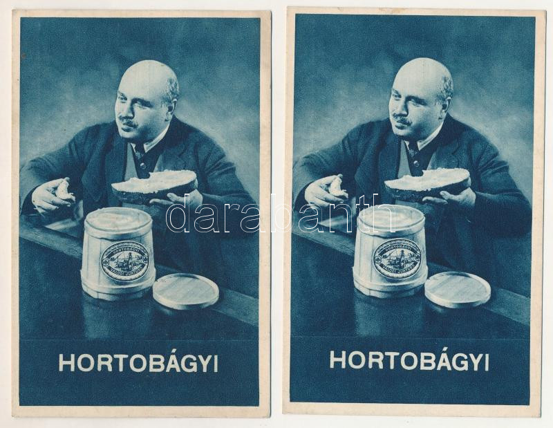 5 db RÉGI egyforma képeslap: Még ennyit: régen liptói, most hortobágyi. Hortobágyi valódi juhtúró reklámlap / 5 pre-1945 identical Hungarian real sheep cheese advertisement postcards