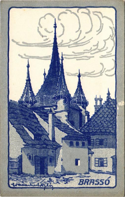 Brassó, Kronstadt, Brasov; Katalin-kapu, a XV. század elején épült, ma már befalazott Katalin-kapu Brassó régi erődítményeinek egyik utolsó maradványa / Poarta Ecaterinei / gate, Hungarian irredenta, artist signed (non PC) (EK)