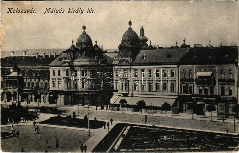 Kolozsvár, Cluj; Piata Unirii / Mátyás király tér, Erdélyi Bank, Haras... https://www.darabanth.com/de/512-Fernauktion/512.0/Ansichtskarten/Siebenburgen~104/Kolozsvar-Cluj-Piata-Unirii-Matyas-kiraly-ter-Erdelyi-Bank-Haraszthy-Jeno-uzlete-drog~II3437415