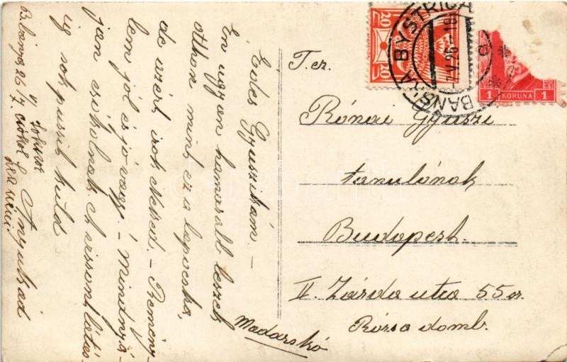 1926 Besztercebánya, Banská Bystrica; Hl. Námestie / Fő tér, Julius Papp, Ignác Kohn, Alexander Edelmann, Árpád Holesch üzlete, Hotel Rak szálloda / main square, shops, hotel. photo (EK)