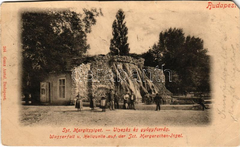 Beschreibung: 1900 Budapest XIII. Margitszigeti vízesés és gyógyforrás. Ganz Antal 104. (EM)