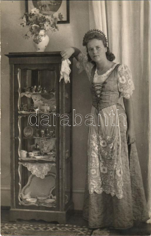1940 Rum, helyi szépség magyaros ruhában, nagypolgári szoba belső. pho... https://www.darabanth.com/de/512-Fernauktion/512.0/Ansichtskarten/Ungarn~103/1940-Rum-helyi-szepseg-magyaros-ruhaban-nagypolgari-szoba-belso-photo-fl~II3428972