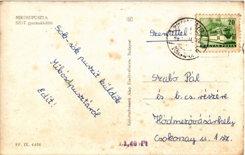 Beschreibung: Mikosdpuszta (Mikosszéplak), SZOT gyermeküdülő. Képzőművészeti Alap Kiadóvállalata (fl)