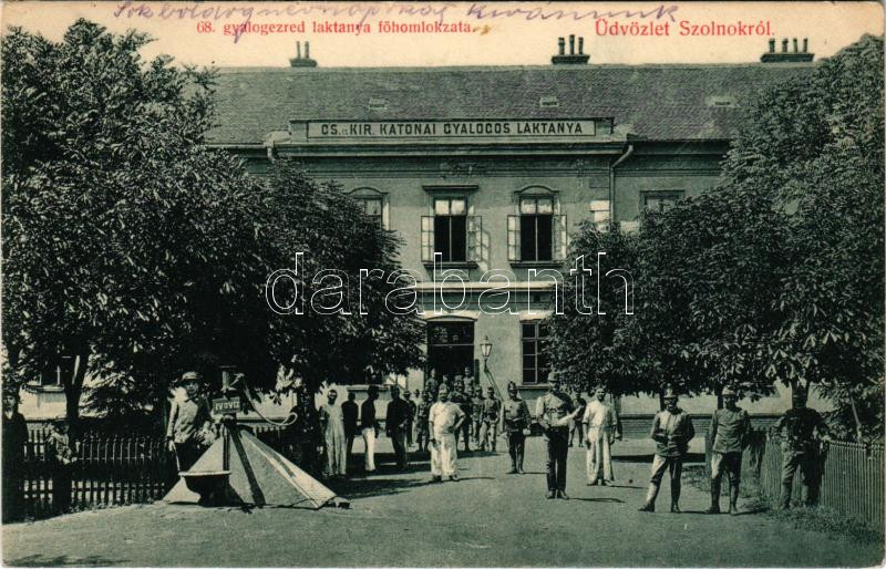 Szolnok, 68. gyalogezred laktanya főhomlokzata, ivóvíz kút https://www.darabanth.com/de/512-Fernauktion/512.0/Ansichtskarten/Ungarn~103/Szolnok-68-gyalogezred-laktanya-fohomlokzata-ivoviz-kut~II3459946