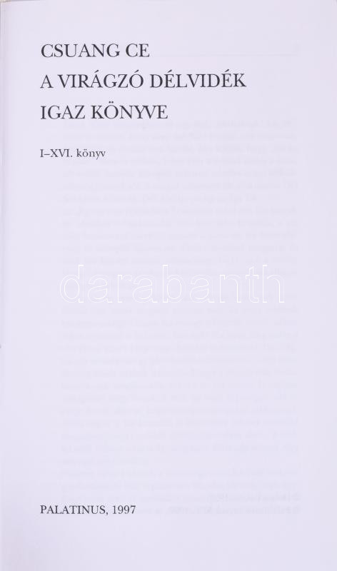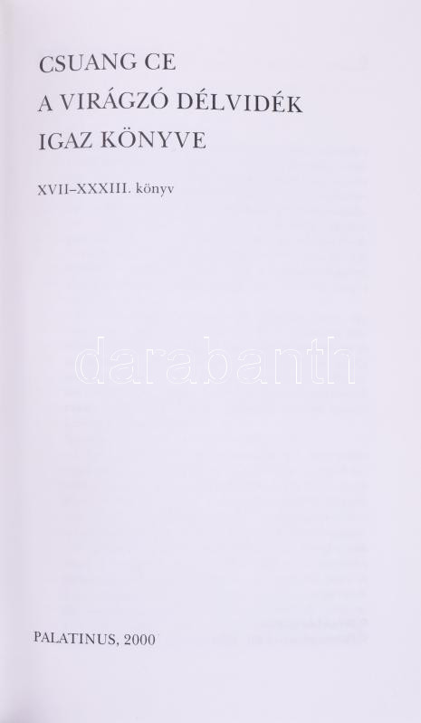 Csuang Ce: A virágzó délvidék igaz könyve I-II. köt. I. köt.: I-XVI., II. köt.: XVII-XXXIII. 1997, 2000, Palatinus.