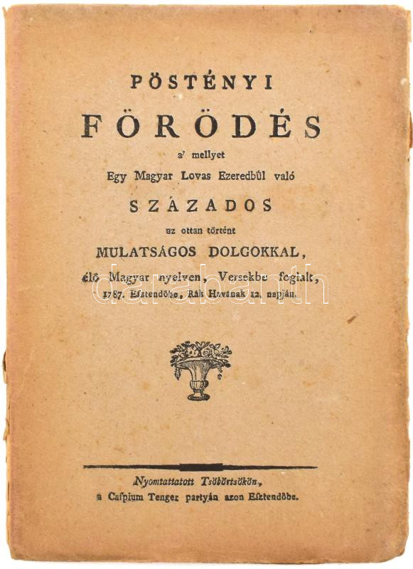 [Gvadányi József]: Pöstényi förödés a' mellyet egy magyar lovas ezredbül való százados az ottan történt mulatságos dolgokkal élő magyar nyelven versekbe foglalt 1787. esztendőbe, Rák havának 12. napján. Bp., 1921., Rózsavölgyi, 45+II+2 p. Az első kiadás (Csöbörcsök, 1787) alapján készült facsimile kiadás 1500 példányban. Kiadói papírkötés.