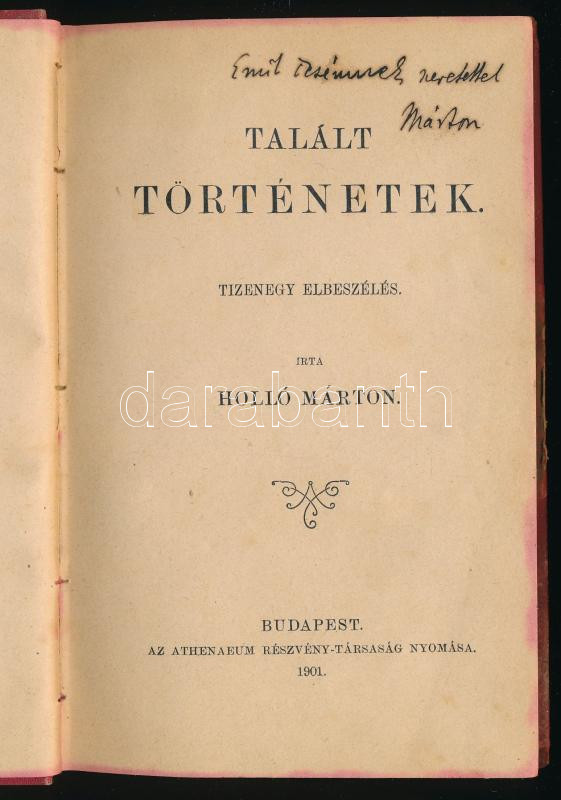 Holló Márton: Talált történetek. Tizenegy elbeszélés. DEDIKÁLT! Bp., 1... https://www.darabanth.com/de/512-Fernauktion/512.0/Bucher/Bucher-Andere-kuriositaten~690/Hollo-Marton-Talalt-tortenetek-Tizenegy-elbeszeles-DEDIKALT-Bp-19011-Athenaeum-Felv~II3460209