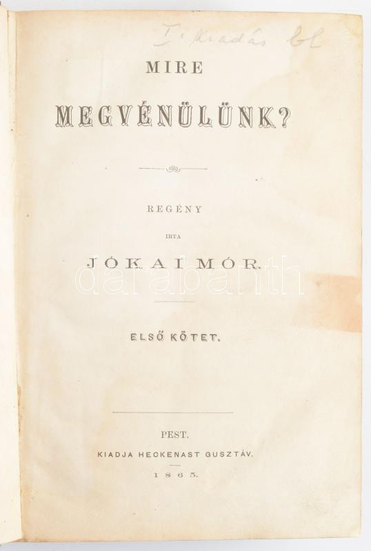Jókai Mór: Mire megvénülünk? Pest, 1865, Heckenast. Első kiadás! Félvá... https://www.darabanth.com/de/512-Fernauktion/512.0/Bucher/Bucher-Andere-kuriositaten~690/Jokai-Mor-Mire-megvenulunk-Pest-1865-Heckenast-Elso-kiadas-Felvaszon-kotes-foltos-~II3460171