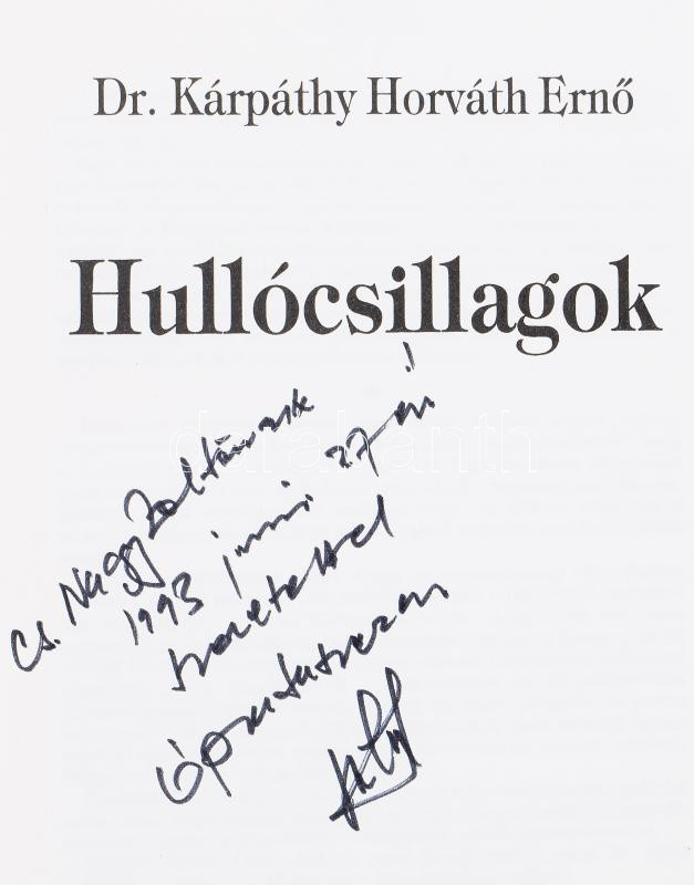 dr. Kárpáthy Horváth Ernő: Hullócsillagok, Bp., 1990. Szerzői. 510p. K... https://www.darabanth.com/de/512-Fernauktion/512.0/Bucher/Bucher-Andere-kuriositaten~690/dr-Karpathy-Horvath-Erno-Hullocsillagok-Bp-1990-Szerzoi-510p-Kiadoi-vaszonkotes-P~II3415890