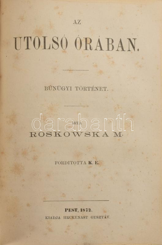 kolligátum: Mühlbach Lujza: A kártyakirály. Történeti beszély. Pest, 1872. 86p., Roskowska M: Az utolsó órában. Bűnügyi történet. Pest, 1872. Heckenast Gusztáv. 87-288p. Aranyozott félvászon kötésben.
