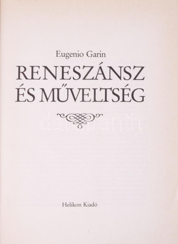 Eugenio Garin: Reneszánsz és műveltség. Fordította: Körber Ágnes. Bp.,... https://www.darabanth.com/de/512-Fernauktion/512.0/Bucher/Bucher-Architektur-Kunst~672/Eugenio-Garin-Reneszansz-es-muveltseg-Forditotta-Korber-Agnes-Bp-1988-Helikon-Kiadoi-~II3459050