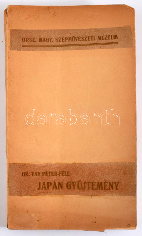Gr. Vay Péter-féle japán gyűjtemény. Bp., 1908, Hornyánszky. Kiadói papírkötés, kötéstábla sérült, kopottas állapotban.