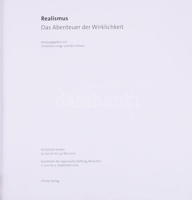 Realismus. Das Abenteuer der Wirklichkeit. (Kiállítási katalógus.) Szerk.: Christiane Lange, Nils Ohlsen. München, 2010, Hirmer Verlag. Gazdag képanyaggal illusztrálva. Német nyelven. Kiadói kartonált papírkötés, a borító sarkán kis sérüléssel.